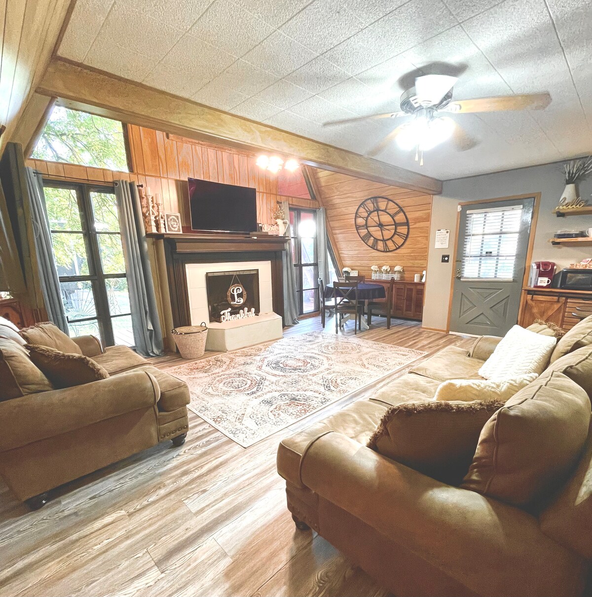Nuestra casa de campo junto al lago es la mezcla perfecta de eclecticismo, acogedor y funcionalidad. Hay una radio de estilo años 40 en la sala de estar, equipada con Alexa y lista para reproducir tus canciones favoritas a tu orden. (Solíamos hacer fiestas de baile y practicar el 2 stepping). Los dormitorios comparten una unidad mini split que te mantiene fresco en verano y caliente cuando hace frío. Hay una unidad independiente en la zona principal de la casa. Hay televisores inteligentes en la sala de estar, la habitación de invitados y el loft.