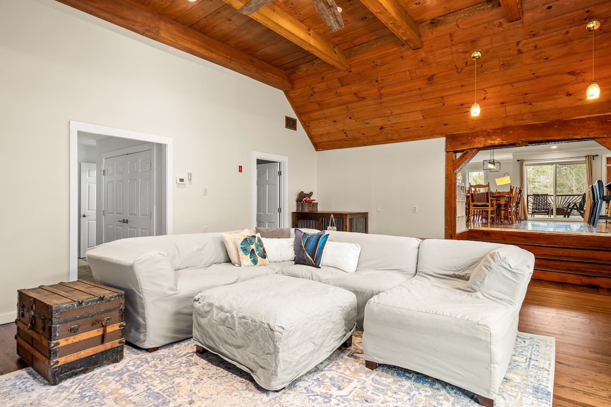 ¡Te damos la bienvenida a la casa de campo en Barrington House! La casa Barrington está enclavada en las serenas montañas Berkshires, que durante mucho tiempo han sido un santuario para los habitantes de la ciudad cansados que buscan espacio para respirar, ¡un refugio perfecto para artistas, escritores y pensadores! Sus amplios terrenos ofrecen impresionantes vistas de exuberantes valles y picos distantes, mientras que el interior cuenta con una chimenea, un acogedor rincón de lectura y ventanas ilimitadas que invitan al mundo natural a entrar.