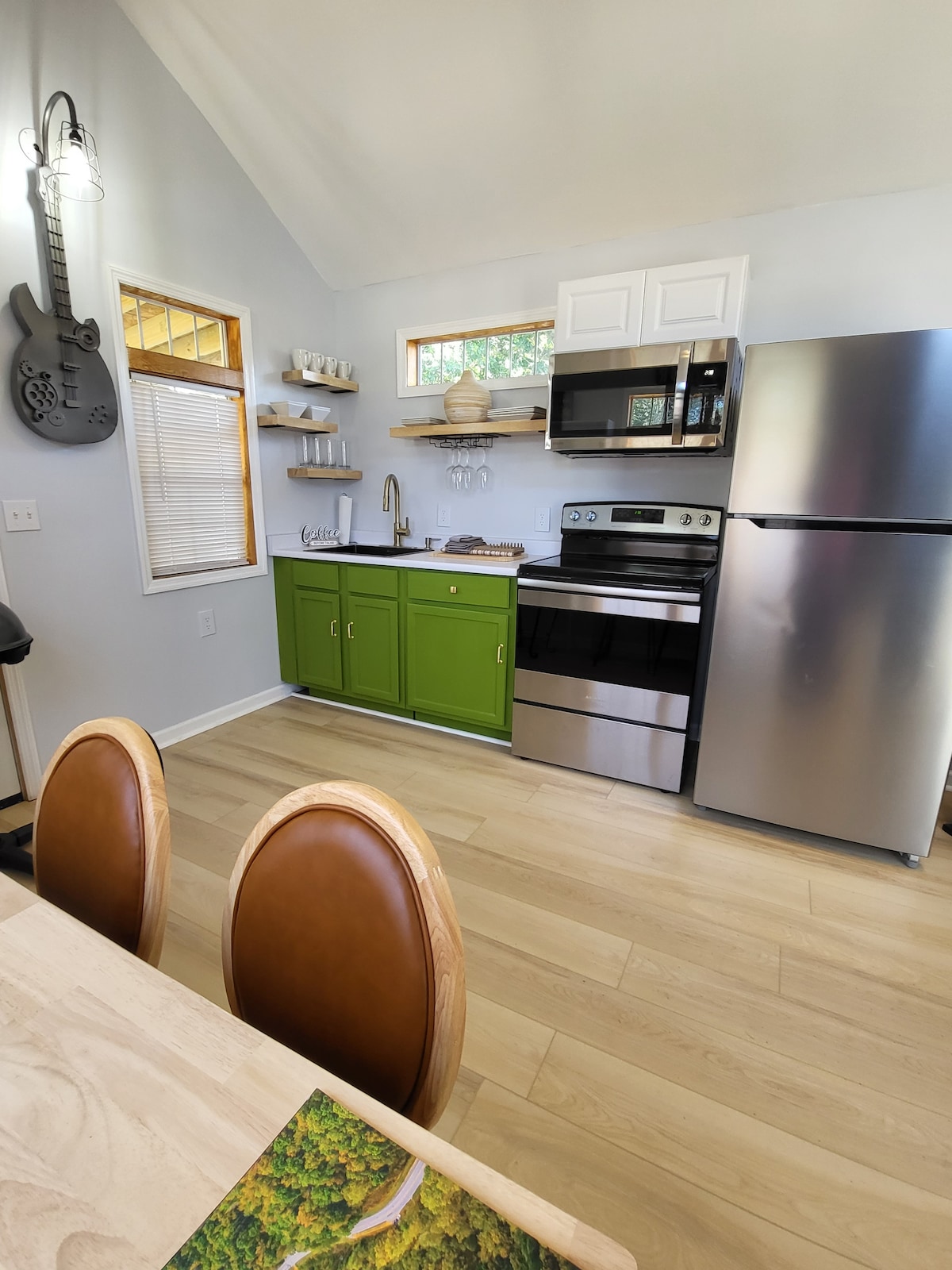 Welcome to your cozy retreat in the West End of Downtown Greenville! This newly constructed, detached garage studio near the up and coming West End Village, Unity Park, and downtown offers easy access to the city's best entertainment, boutique shops, and vibrant food scene. Enjoy a queen-sized memory foam bed, a fully equipped kitchen, and a dedicated dining area. High-speed Wi-Fi and a smart TV are included. Perfect for a peaceful escape with all the comforts you need for a memorable stay.