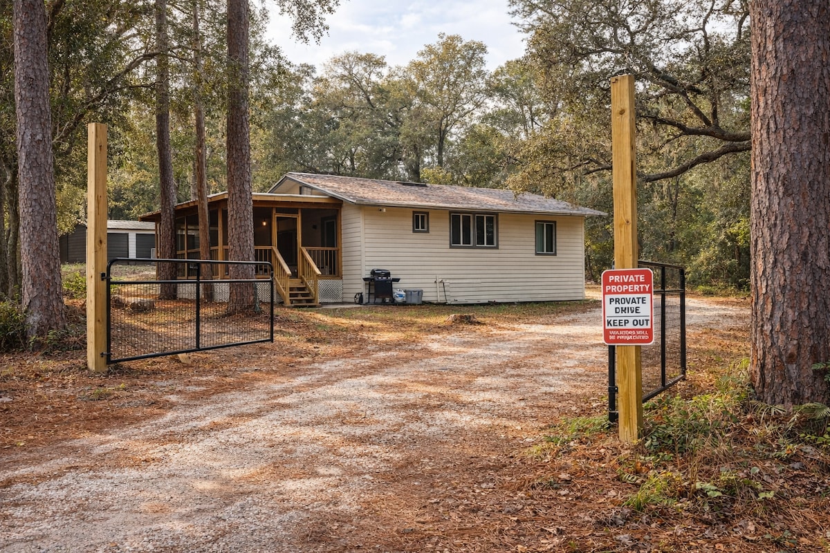 Hermosa casa de huéspedes de madera. Una escapada en una superficie de varios acres, enclavada en una zona boscosa. Cuenta con una espaciosa habitación con una acogedora sensación de albergue, 2 dormitorios y 2 baños completos. Cocina completa y lavandería. Porche delantero cercado, entrada pavimentada y cochera. ¡Persianas contra huracanes recién instaladas! Restaurantes cercanos y muchos restaurantes a 10 millas. Ideal para caminar, hacer senderismo o montar en bicicleta. Relájate y disfruta de las ofertas de tiendas y restaurantes de The Villages, pero vuelve a la paz, la belleza y la tranquilidad. .