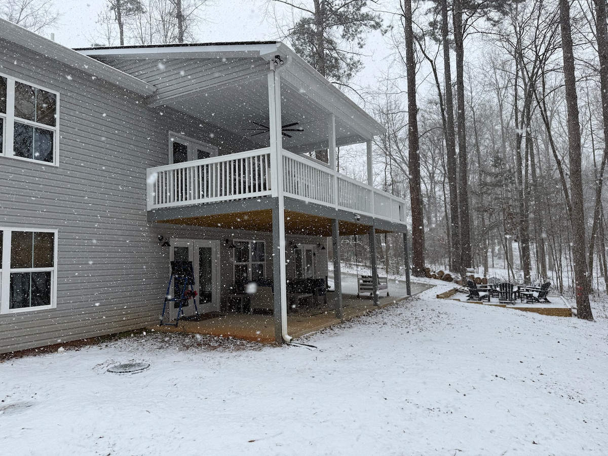¡Aparece en AJC como uno de los mejores Airbnb de Georgia! Diseñamos nuestra cabaña con estructura en A frente al lago para ofrecer la escapada perfecta y nos encanta compartir nuestro hogar contigo. Despiértate con amaneceres sobre el lago mientras bebes café en la gran terraza o bebes chocolate caliente junto a la hoguera. Nuestra cocina moderna también pide a gritos que se cocine en ella. En los meses más cálidos, disfruta nadando, haciendo kayak o surf de remo en el muelle privado. Tanto si quieres relajarte como trabajar en hojas de cálculo, disfrutarás de una hermosa vista mientras lo haces.