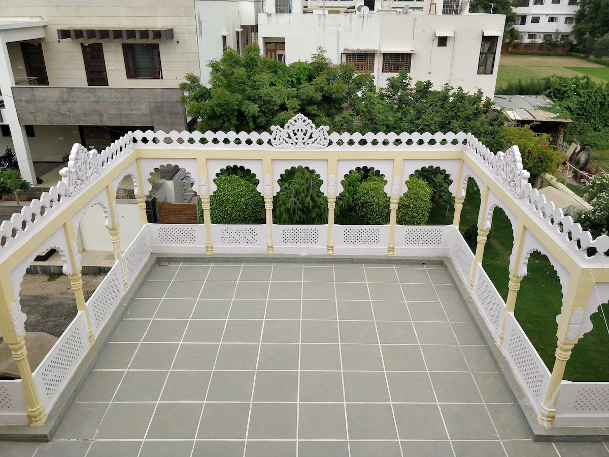 Ven y experimenta la magia de Udaipur. Relájate y rejuvenece en los elegantes y espaciosos apartamentos de 2 dormitorios, Qilasaaz Suites. Con una ubicación céntrica (Chetak Circle), pero tranquilo y hermoso jardín, terraza en la azotea. A poca distancia (1-1,5 km) del casco antiguo, cerca de Fateh Sagar y Swaroop Sagar. Qilasaaz Suites es la opción perfecta para familias y un grupo de amigos.