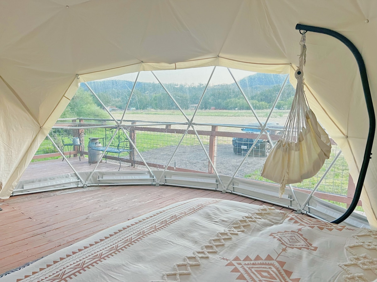 Escápate al Creek Dome, ubicado en 160 acres de bosque natural. Su diseño de cúpula geodésica ofrece una sensación redonda encantadora y relajante que rodea. Desde la comodidad de tu cama, la gran ventana ofrece vistas impresionantes de las estrellas, los árboles, el arroyo, la vida silvestre y la luz natural, creando una experiencia tranquila para dormir bajo las estrellas. Esta experiencia única de glamping promete tranquilidad y rejuvenecimiento. Ven a redescubrir la magia de la naturaleza con nosotros.