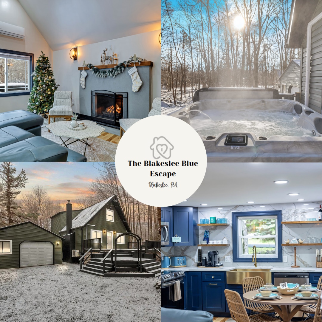 Escape to our charming 2BD log cabin, beautifully designed with modern, cozy touch. Enjoy the hot tub & outdoor TV & BBQ on the back deck. The spacious backyard offers room for games & relaxation. Inside-the open concept living area features a woodburning fireplace, dining room, kitchen & sunroom with a record player. The stunning bathroom includes a freestanding tub and shower. Both queen-sized bedrooms have closets for your convenience. Close to main Pocono Attractions -Jim Thorpe & Mountains