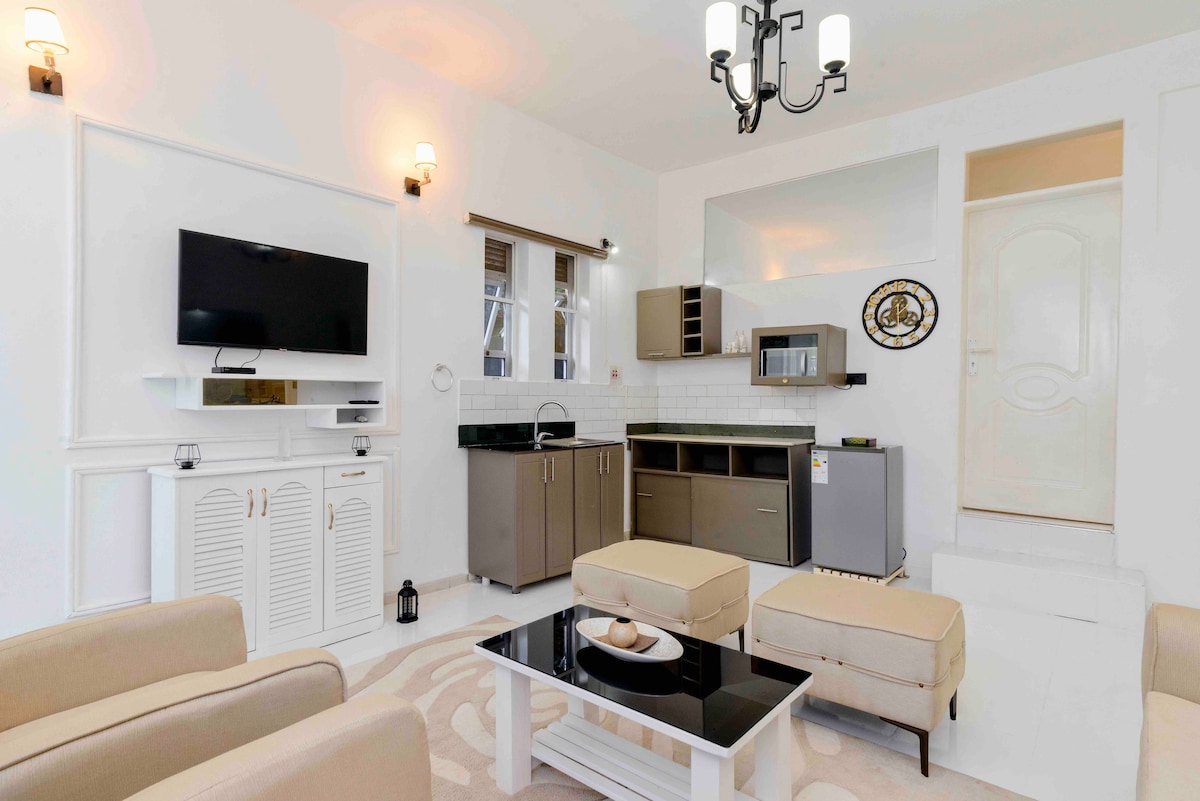Impresionante estudio de cama doble junto a una casa principal ubicada en la colina Bukasa - Muyenga con vistas al lago Victoria. El estudio está limpio y cómodo. Proporcionar todos los elementos esenciales en un vecindario seguro con numerosas opciones de transporte. Muchas tiendas de comestibles, restaurantes, bares y cafeterías están a un salto de distancia, dejándote consentido para elegir. La ciudad de Kampala y Kabalagala están a menos de 15y10 minutos, respectivamente. Adecuado para una pareja o persona soltera. La privacidad está garantizada o la compañía con los anfitriones si es necesario.