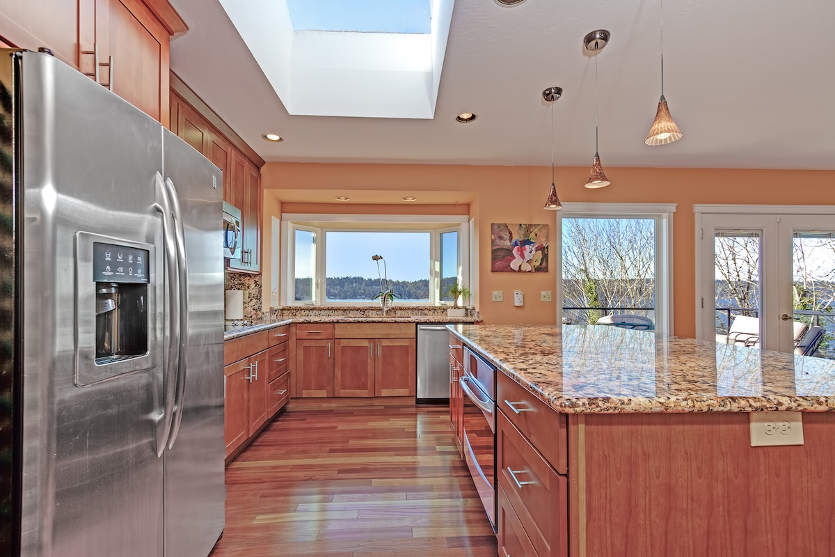 Nuestro apartamento tipo estudio tiene una entrada privada y un balcón privado tipo Julieta para disfrutar de impresionantes vistas de Puget Sound. Duerme cómodamente en una cama Tempurpedic con elevación ajustable de cabeza y pies. Sofá cama adicional para huéspedes adicionales. Se proporcionan todas las necesidades. Piscina cubierta privada con vistas al estrecho de Puget. Muchas atracciones se encuentran a 10 minutos a pie, incluida la playa de Mukilteo, la terminal de transbordadores, el tren Sounder al centro de Seattle o la ciudad de Mukilteo.