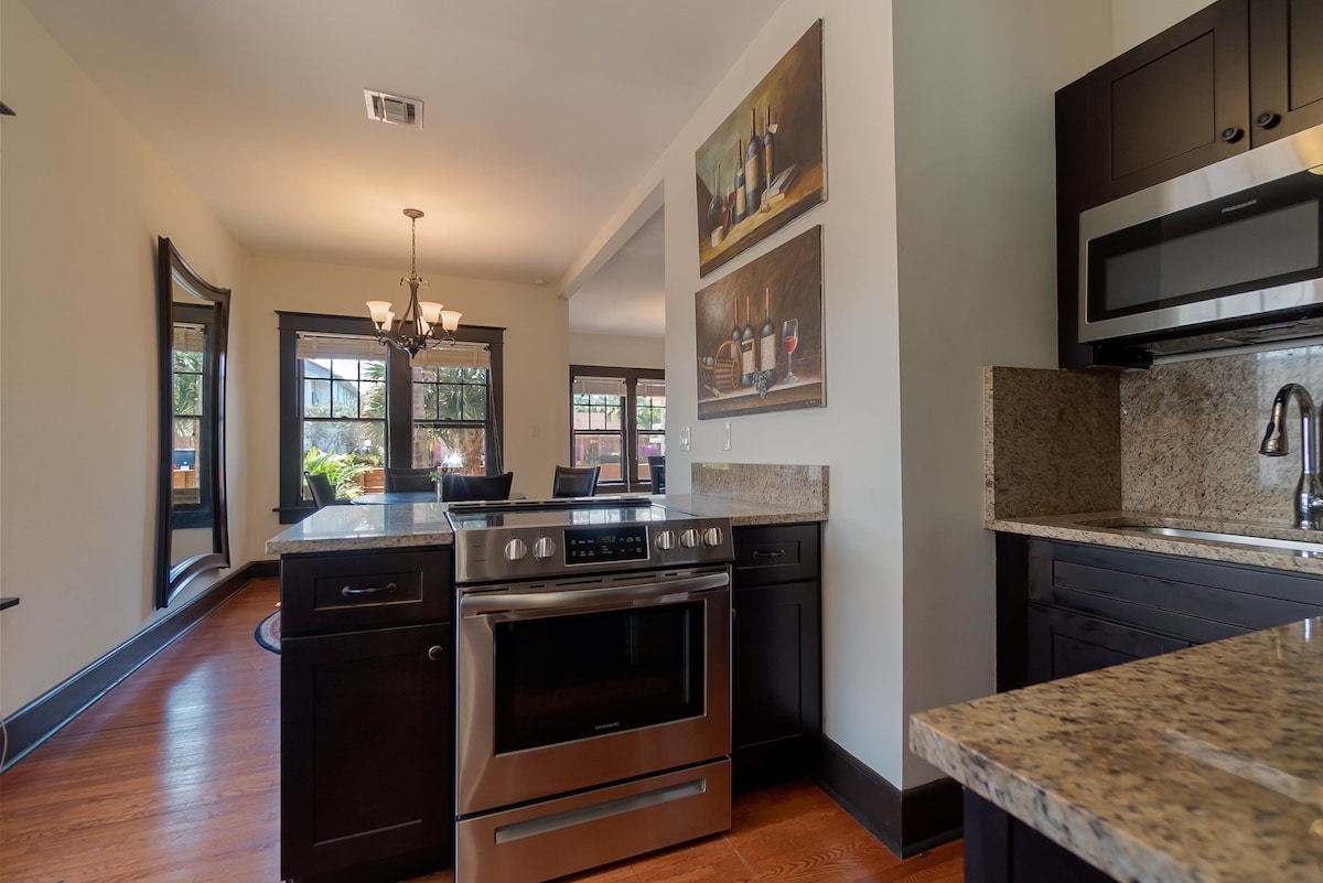 Disfruta de una comodidad de lujo y un estilo moderno a solo 10 minutos en coche de la playa. Te encantará la encimera de cocina personalizada única y 2 acogedoras camas. Hemos pensado en todo para que tu estancia sea cómoda: TV inteligente 4K de 65 pulgadas, lavadora/secadora, 2 plazas de aparcamiento dedicadas, un patio privado y una cocina totalmente equipada. Hay un escritorio de trabajo dedicado e internet de alta velocidad. Sistema de ducha de hidrojet y espejo iluminado en el baño, espejo de ambiente que cambia de color, ventanas de impacto, aire acondicionado central, salida al mediodía.