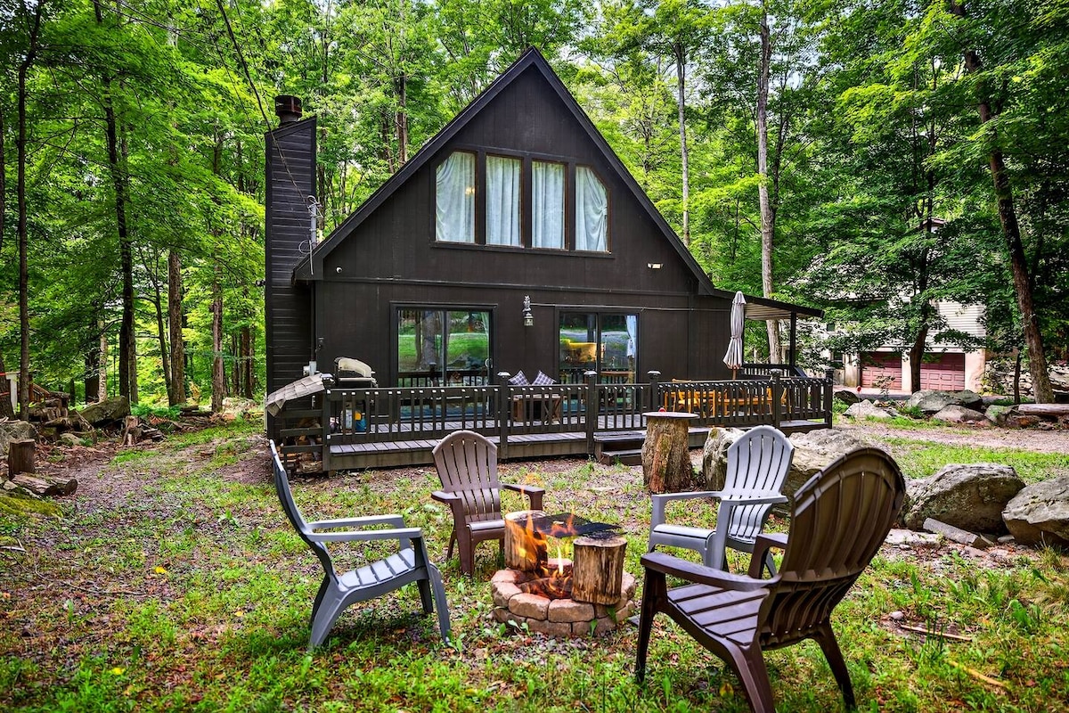 Relájate en la naturaleza cuando te hospedes en este tranquilo refugio situado en 2 acres tranquilos de un maravilloso bosque. La cabaña de 2 dormitorios y 1 baño tiene capacidad para hasta 8 huéspedes. La espaciosa sala de estar y el amplio espacio de cocina aseguran que entretener a tu grupo sea pan comido. Terraza al aire libre con parrilla para noches de barbacoa. El porche delantero cubierto es ideal para ver la vida silvestre pasar a través de la propiedad. ¡Acurrúcate junto a la hoguera para divertirte más! ¡Disfruta explorando todo lo que las Pocono te ofrecen cuando te hospedes aquí!