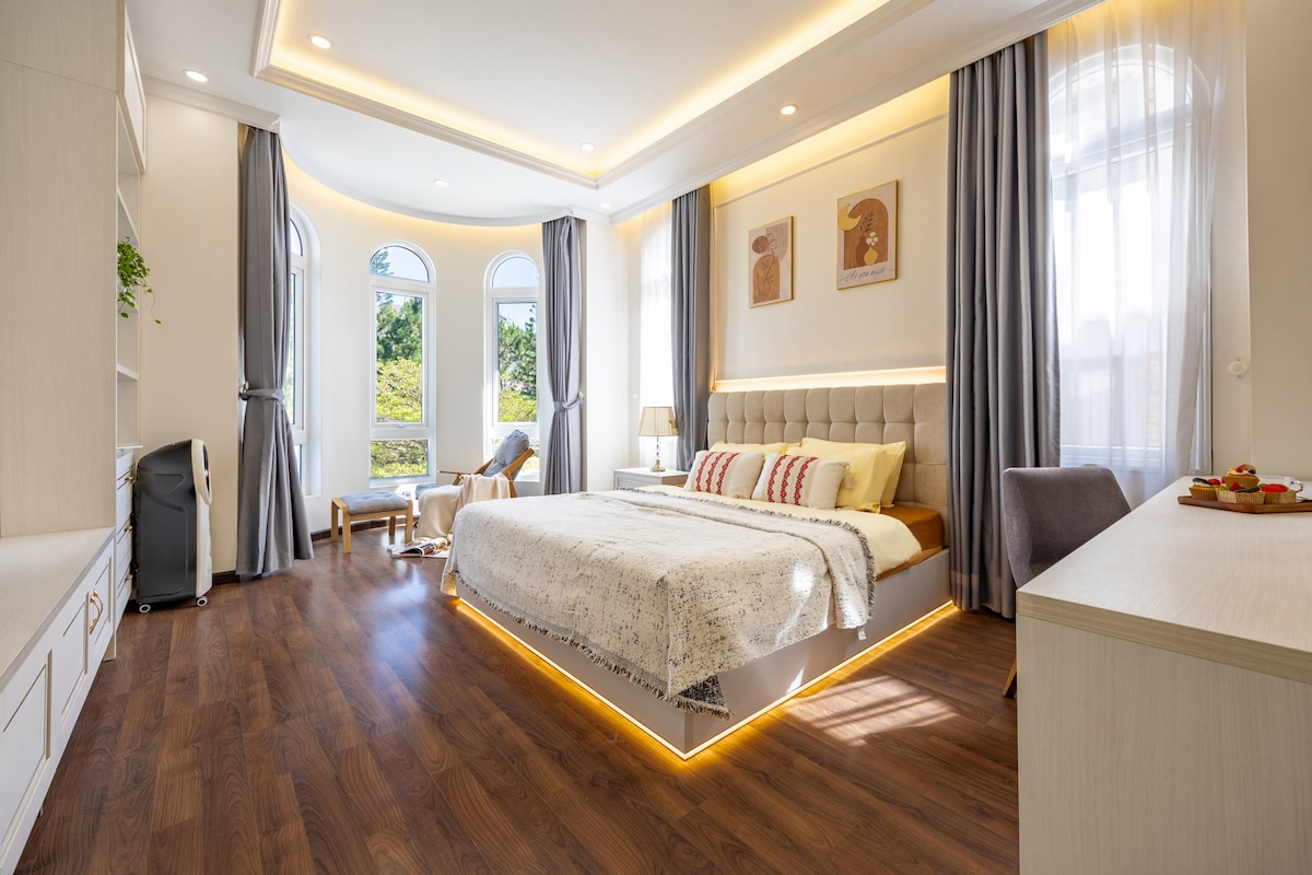 🌲 ¡Te damos la bienvenida a Penthouse Retreat, Stardome Dalat! Ubicado en la planta más alta de la propiedad, el apartamento ofrece una privacidad absoluta, instalaciones completas y una vista poética al bosque de pinos. ✨ • Relajante bañera de vidrio mirando el bosque desde el baño • Cocina bastante privada, acogedora mesa de comedor de madera • Televisión grande, cuenta de Netflix, wifi fuerte Estacionamiento gratuito • Tamaño: 70 m² (apto para 2–4 personas) 👉 Nota: Dado que el ático está en el ático, tomará el ascensor hasta el cuarto piso y tendrá que subir las escaleras 1 piso.