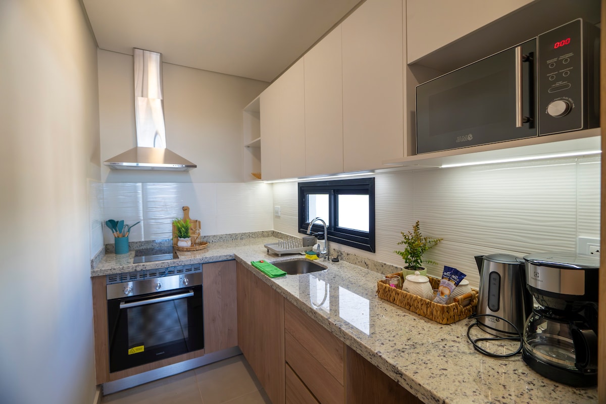 Elegante apartamento de 1 dormitorio en una de las mejores zonas de Asunción, a pasos de los mejores centros comerciales. Disfrute de una cocina completa, una cómoda sala de estar, un balcón y acceso a los increíbles amenities del edificio: piscina en la azotea y gimnasio. Diseñado para estadías cortas y largas, con recepción 24 horas para su comodidad. Un espacio acogedor para relajarse y sentirse como en casa.