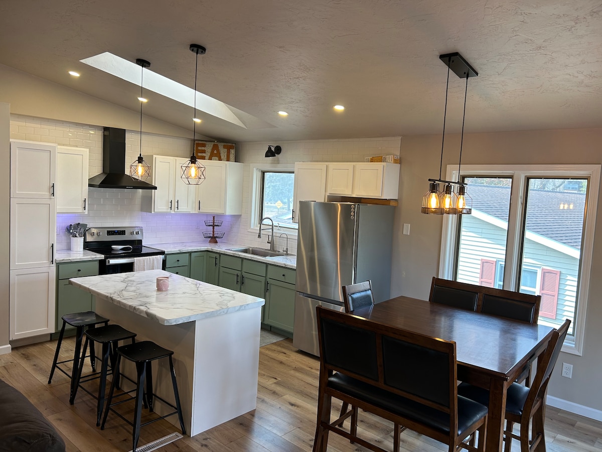 - Retiro familiar situado en el centro del distrito de la ciudad. - A 10 minutos a pie de Lambeau Field and Resch Center. - Acceso a toda la propiedad y proporcionamos muchos artículos de tocador para que los viajes sean más fáciles. - Muchos juegos de mesa/ cartas y juguetes para los niños, y máquina de palomitas de maíz. Cerca de muchas actividades familiares - Todas las camas tienen colchones de espuma viscoelástica nuevos y la cocina tiene ropa de cocina de acero inoxidable nueva. - Relájate afuera en las nuevas sillas Adirondack junto a la fogata.