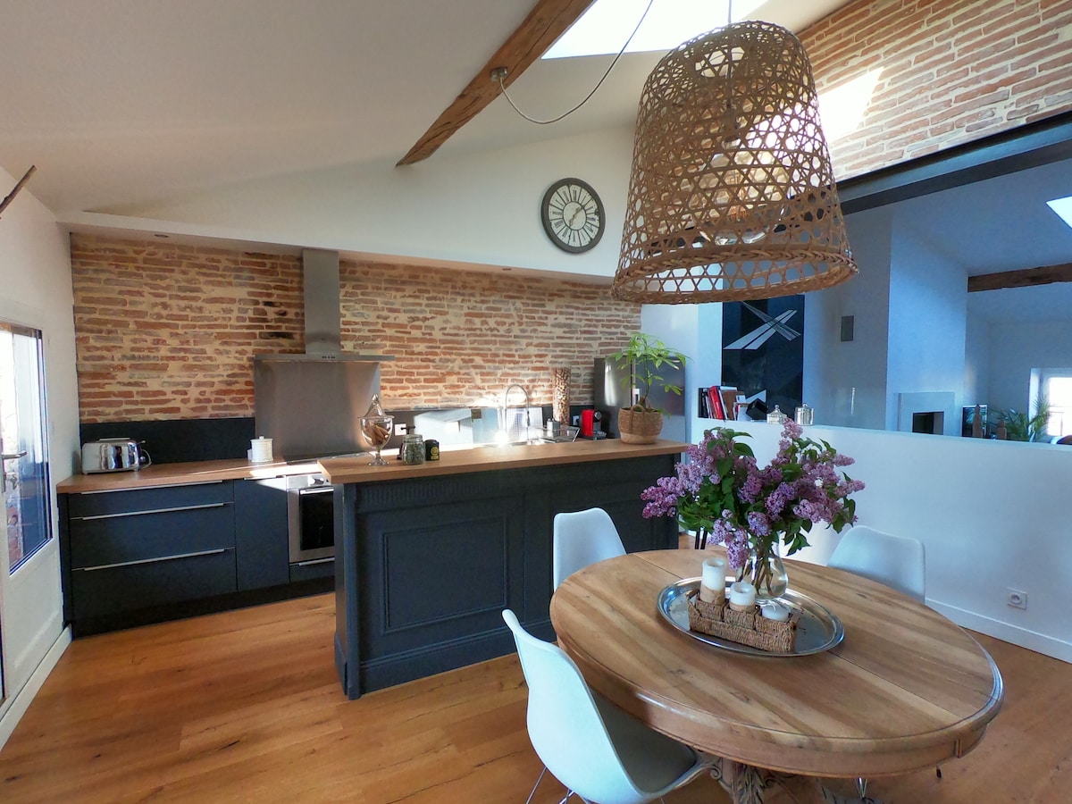 Apartamento con encanto, tranquilo, en un edificio antiguo totalmente renovado, situado en el centro histórico de Montauban, dispone de terraza privada con vistas al Tarn y al puente viejo. A 50 metros del Museo Ingres Bourdelle, a 150 metros de la Plaza Nacional de sus lugares de interés, de las animaciones del corazón de la bastida, este apartamento está idealmente situado para descubrir Montauban y su historia. Muy bien equipado, también es adecuado para profesionales.