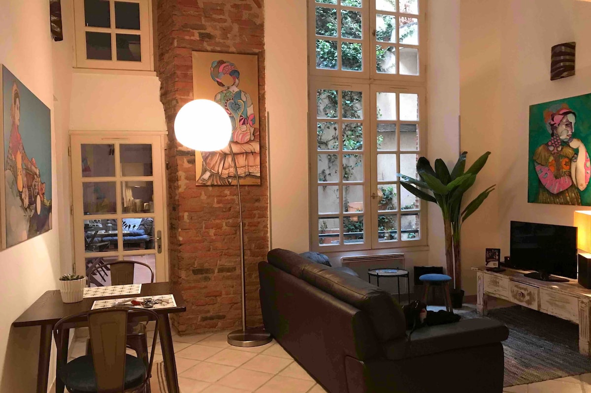 Habitación totalmente independiente y con aire acondicionado en un patio interior privado en el primer piso de una antigua mansión en el centro histórico de Montauban. Cómoda cama grande de 160 cm, baño separado con ducha e inodoro, zona de cocina con nevera, placa de cocción, cafetera Nespresso. Cerca de tiendas y restaurantes, aparcamiento a 80 m. Perfecto para parejas, personas que viajan solas y viajeros de negocios. Dispongo de un local para bicicletas seguro