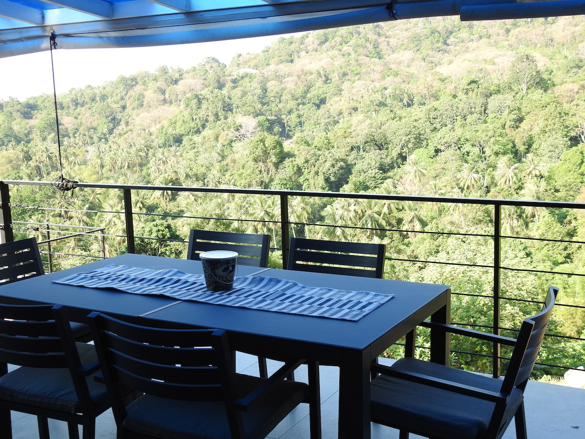 Eagle 's Nest Retreat se encuentra en una colina con una exuberante selva verde y de lluvia detrás y unas vistas impresionantes del mar al frente. Muy tranquilo y fuera de la pista turística, donde la paz y la serenidad están aseguradas. Hay 3 apartamentos privados disponibles (Eagle 's Nest, View y Perch). Todos están amueblados con una cama tamaño king y un sofá cama tamaño queen. Todo con balcones muy grandes para disfrutar de la naturaleza. Eagles y Hornbills son solo algunas de las aves y otros animales salvajes que se pueden ver diariamente desde el balcón. A 10 minutos del aeropuerto.