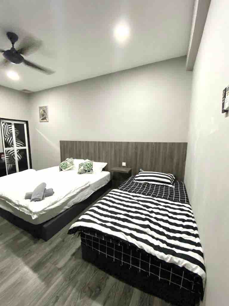 NUEVA UNIDAD ubicada cerca de Kuah, el corazón de Langkawi. Es una suite con baño privado. ¡A poca distancia a pie de tiendas libres de impuestos, restaurantes y cafeterías! - Tienda de comestibles 7-11 abajo. - A 3 minutos a pie de Rams Home Decor Duty Free. - A 3 minutos en coche del mercado nocturno de la ciudad de Kuah, el duty free Haji Ismail, el parque acuático Splash Out Langkawi y la torre Maha para disfrutar del atardecer. - A 5 minutos en coche del centro comercial Teow Soon Huat, Jetty, Eagle Square y del centro comercial Langkawi Fair.