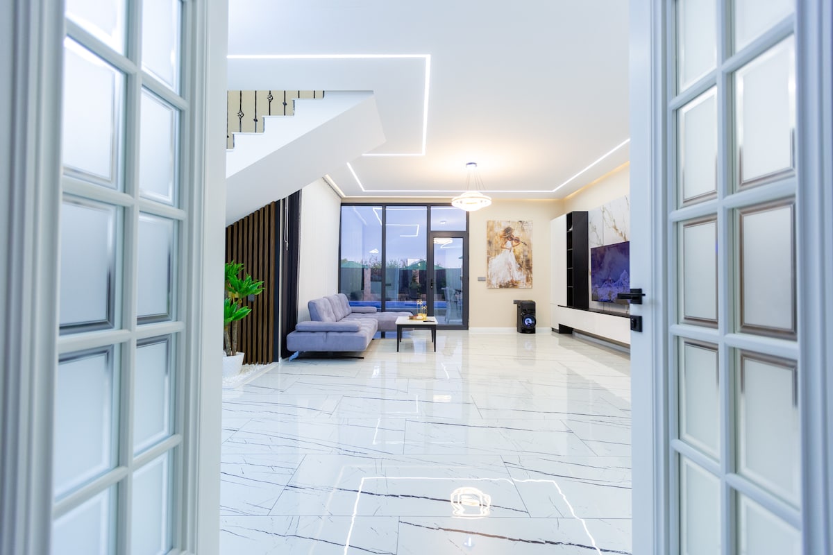 ¡Bienvenido a Caspian Colorful Villas – White House! Disfruta de un refugio tranquilo en el corazón de Lankaran. Esta villa privada cuenta con un interior luminoso y acogedor, una cocina completa, un jardín privado y es perfecta para familias o parejas. A solo 10 minutos de la playa y rodeado de naturaleza. Relájate, recarga las pilas y siéntete como en casa Esposa rápida Estacionamiento gratuito Aire acondicionado Cocina totalmente equipada Zona exterior privada