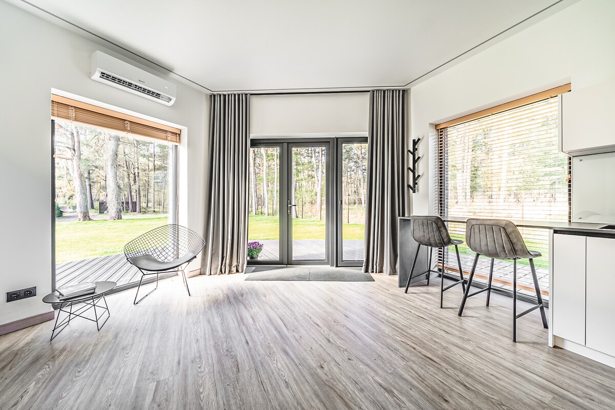 🌊 A cozy and stylish cabin just 250 m from the sea – perfect for a romantic escape or a family retreat! Surrounded by nature trails, fish restaurants, and a national park. Private yard with grill for relaxing dinners. Unwind in the sauna and hot tub under the stars (both for €80). A peaceful place to breathe fresh air, enjoy nature, and recharge. Tranquil setting – no parties allowed. Book your dream coastal getaway today and experience the rest you truly deserve!