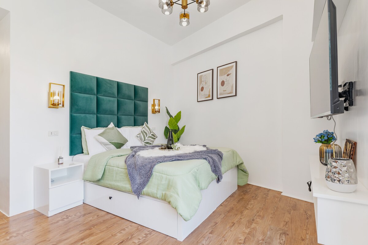 ¡Relájate en este tranquilo y elegante estudio cerca del Aeropuerto Internacional Mactan-Cebu! Inclusiones: - Acceso gratuito a la piscina y al gimnasio - Toallas y artículos de tocador. - Café de cortesía - Secador de pelo - Plancha de ropa. - Ropa de cama adicional (bajo petición) - Wifi. Acerca de nuestro espacio: - Admite mascotas. - 32 m² con balcón frente a la piscina - Cama de matrimonio con 2 enchufes junto a la cama - Escritorio de trabajo - Ducha fría y caliente. - Comedor - Televisión inteligente con Netflix - Roperador - Cocina - Lavadora.
