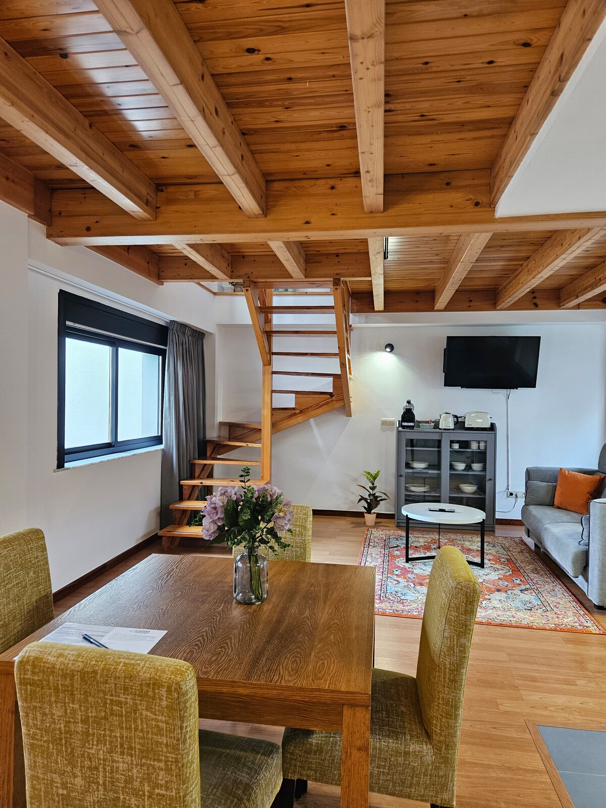 Loft en Milladoiro, dos alturas, a 3 km de Santiago de Compostela. Acceso a la autopista en 1 minuto. Mercadona, gasolinera, restaurantes a pie de puerta. Hospital clínico a 2 km. En media hora estarás en las playas de Noia, en 45 minutos en Sanxenxo, Ribeira, Finisterre, etc. Cocina completa, baño con ducha, cama de 160 cm y sofá cama de 150 cm. Parking incluido en el mismo edificio. Máximo 4 huéspedes. Debido a los grandes ventanales no hay oscuridad absoluta en el sofa-cama al amanecer.