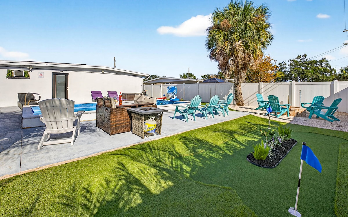 Escape to this stunning heated pool house in a private, fenced lot—your perfect Florida retreat! Stay connected with fast Wi-Fi and enjoy off-street parking. As our guest, you'll receive FREE beach gear: 4 chairs, umbrella, cooler, and a large beach blanket for easy beach days. Inside, enjoy 4 spacious bedrooms, a gazebo with TV, comfy sectional, and egg chairs. Have fun with Pac-Man and darts, or relax around the fire pit. Only 10 minutes to the beach and close to top attractions. Book today!