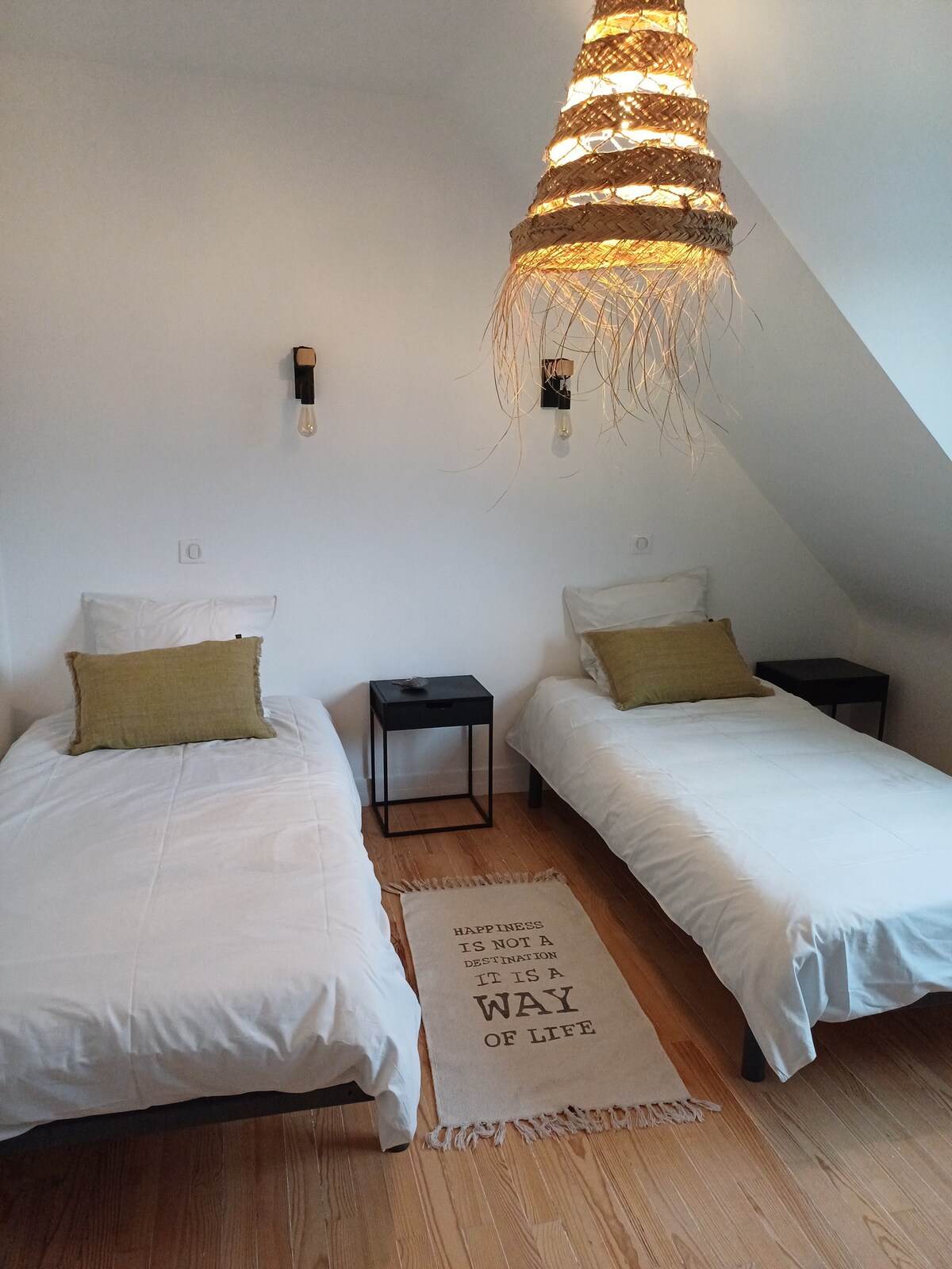 Impresionante loft «La petite pause Bretonne» en dúplex atípico y cálido, estilo industrial y vintage de 110 m2, en el tercer y último piso sin ascensor. Convenientemente ubicado en el centro de la ciudad de Auray cerca del puerto de St Goustan y a 5 minutos de la estación de tren. Cerca de supermercados, restaurantes, panaderías, tiendas, transporte público... A 15-20 minutos de las playas y alineamientos de Carnac, el golfo de Morbihan, la Trinité-sur-Mer, la costa salvaje de Quiberon, Vannes...