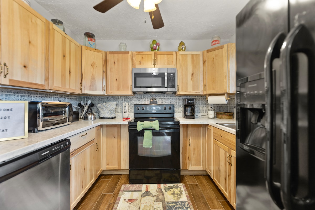 ¡Diviértete con toda la familia en este alojamiento moderno y elegante! A pocos minutos del centro de Elizabethtown, a menos de 3 kilómetros del parque deportivo Elizabethtown Sports Park y del complejo deportivo Bluegrass Sportsplex, cerca de la I-65 y a poca distancia en coche de Fort Knox, lo que lo convierte en un lugar muy deseable. ¡Los lujosos colchones de espuma de látex y los televisores inteligentes en las habitaciones de la suite, la pintura nueva y los suelos de madera en todas partes, la limpieza impecable y los purificadores de aire inteligentes harán que nunca quieras irte! Garaje adjunto para 2 coches.