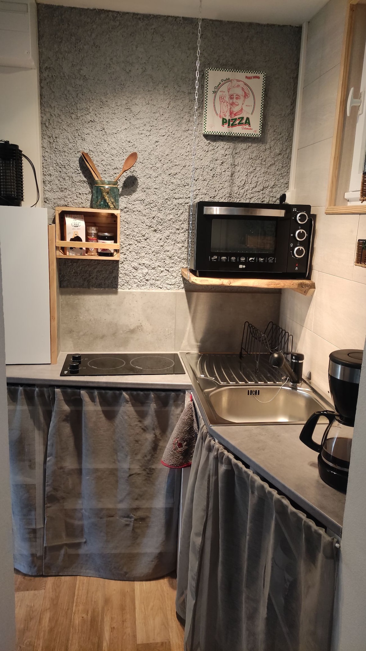 Apartamento 100 % acogedor, situado en la segunda planta de un pequeño edificio. Ubicación tranquila, pero situado en el corazón del pueblo, con un amplio aparcamiento no privado. Un nido acogedor de 35 m2 para 4 personas, cálido y refinado. 100 m2 de terraza y jardín privado. Para dormir: 1 dormitorio con una cama de 140x190 y un gran vestidor, sofá cama con un colchón real de 140x190 Camas hechas a la llegada. Cocina totalmente equipada. Cuarto de baño con ducha, aseo independiente. Toallas de baño incluidas.
