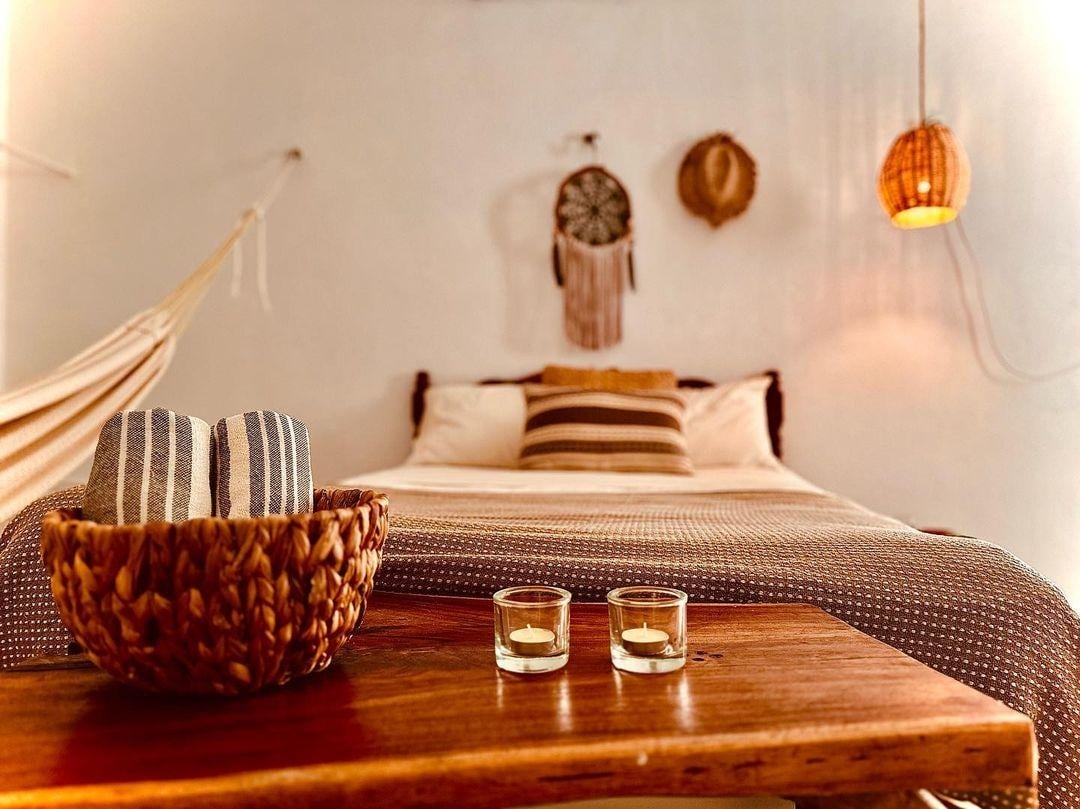 Large 1 bdr apartment Close to beach! “Amazing, quiet, a true hidden gem”, per previous guests. Quiet Large 1 bedroom private apartment, queen mattress, satellite Wifi. AC. Self checkin. Beautiful terrace, & palapa with Yucatan hammocks in tropical jardin. Close to beach - just 2 min walk through palm trees! Your private eco apartment, with queen bed, nice linens, & wooden French double doors to a large terrace. Bar kitchenette. Welcome Basket with free first morning’s coffee!