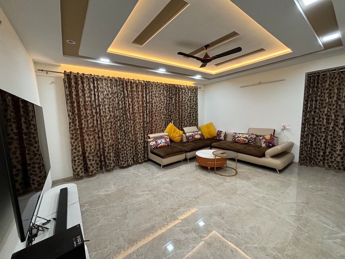 Acogedor y espacioso dúplex de 3/4 dormitorios cerca de la estación de tren de Nashik, ideal para familias y viajeros de negocios. Cuenta con 4 baños modernos, una luminosa sala de estar y una cocina totalmente equipada. Disfruta de luz natural, wifi, aparcamiento y un barrio. Cerca de los viñedos de Sula, templos y atracciones de la ciudad: ¡tu hogar perfecto lejos de casa en Nashik! Tanto si vas a visitar Nashik por trabajo como para relajarte, este dúplex ofrece un santuario perfecto para recargar energías.