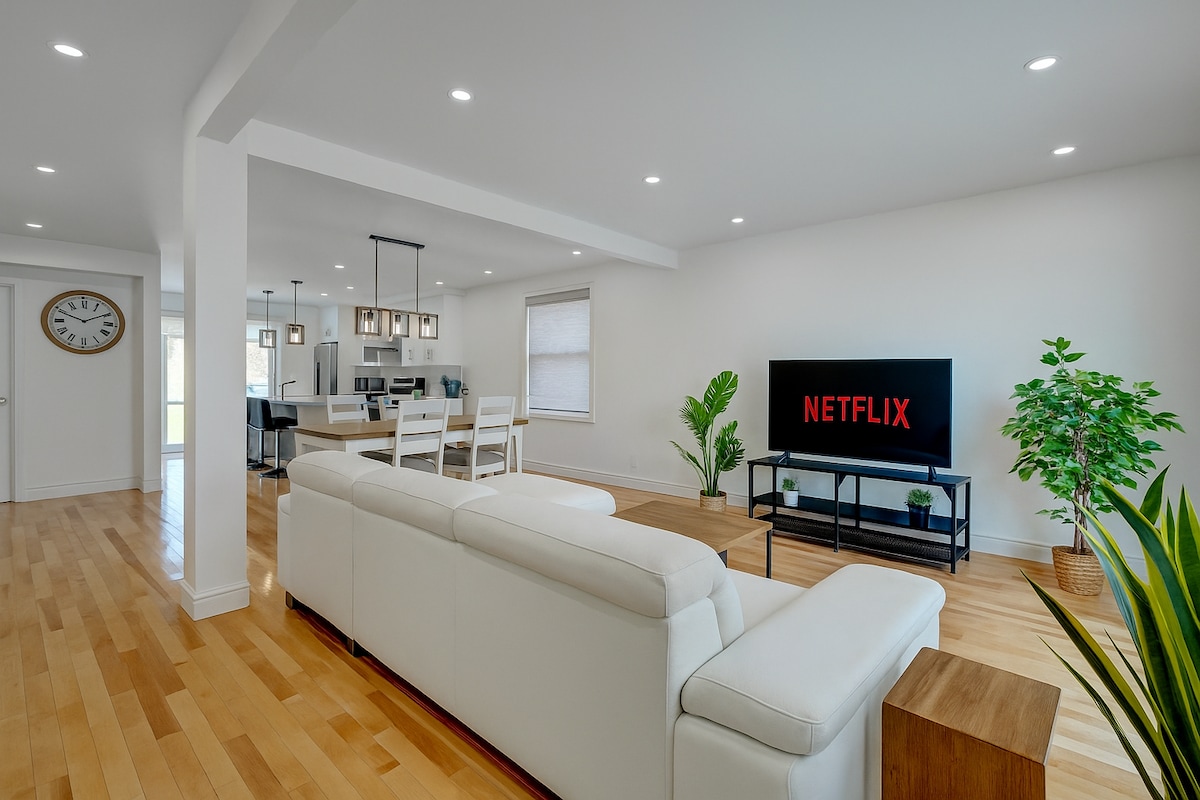 Relájate y recarga energías en este refugio sereno y único. Este apartamento totalmente renovado en el sótano se encuentra en un barrio tranquilo y silencioso, perfecto para relajarse después de un día de trabajo o de turismo. Disfruta de una noche de sueño reparador en la cama doble que te hará sentir como en casa La cocina cuenta con todos los elementos básicos, incluida una tostadora de pan y una cafetera para tu comodidad. Reproduce tus programas favoritos en la televisión inteligente con wifi de alta velocidad: Netflix y relájate fácilmente.