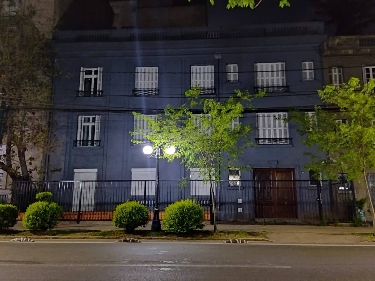 Acogedora habitación matrimonial (con un camarote extra, por si son más personas) con baño privado en el centro de Santiago a media cuadra del metro Cumming (L5), al frente de un supermercado Santa Isabel y cercano a distintos puntos de interés como museos, parques, bares, restaurantes, etc. Contamos con WiFi !