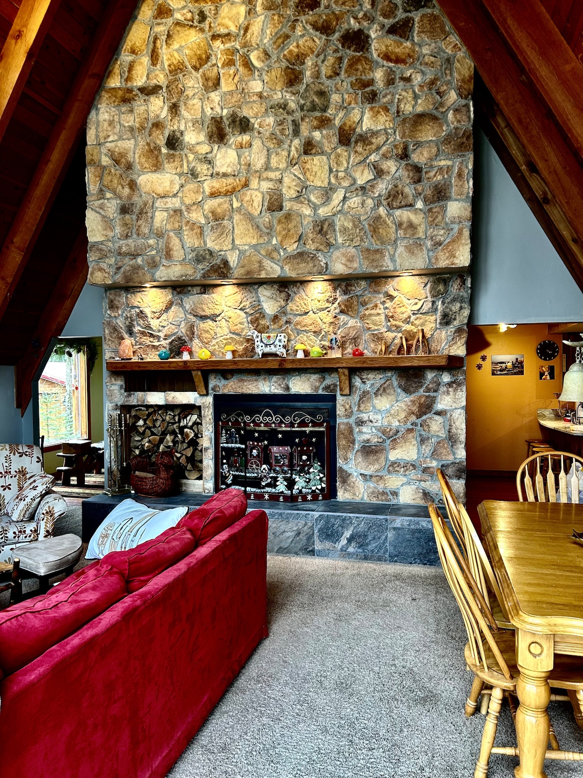 Hermoso chalet de montaña de 3 dormitorios, 3 baños y 3 pisos a solo 4 millas de Seven Springs Resort, senderismo, ciclismo y mucho más. Con sauna, estación de carga para vehículos eléctricos, chimenea, horno doble, lavavajillas y máquina de hielo. Bar con granito, terraza, chimenea de gas, tablero de dardos electrónico y hermosa mesa de ping pong. También una amplia selección de películas. Debes tener 25 años para reservar, se puede hacer una salida después de la hora establecida o una llegada anticipada o ambas si están disponibles por una tarifa de 65,00 USD o ambas por solo 130,00 USD, pregunta en el momento de la reserva. CAFÉ GRATIS.