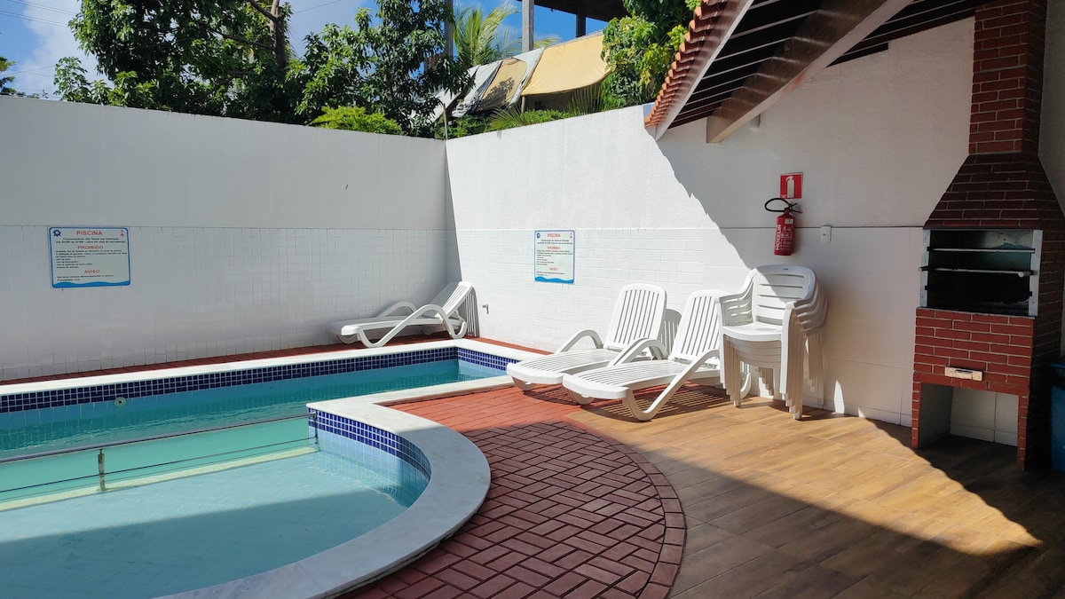 ¡Este lugar especial está cerca de todo y es ideal para relajarse! ¡Condominio completo con piscina, sauna, gimnasio, estacionamiento y restaurante! Está a 20 minutos del aeropuerto y a 7 minutos a pie de la playa de Vilas do Atlântico. Cerca de la carretera de coco que lleva a las playas de la línea verde: Guarajuba, Arembepe, Praia do Forte e Imbassaí. Apartamento completo con wifi, smart TV, aire acondicionado, ventilador de techo y extra, lavadora, cafetera eléctrica, sandwichera, licuadora, hamaca, microondas, cocina