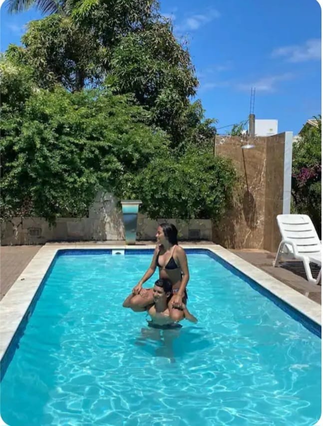 Hay una sala de estar gourmet con aire acondicionado, TV inteligente, TV por cable y barbacoa frente a la piscina. Una bañera de hidromasaje junto a un horno de pizza con vistas a un río y palmeras . Junto a la piscina hay otra barbacoa. Está a 50 metros de la playa, cerca de excelentes bares, restaurantes, aeropuerto, transporte público, supermercados, zona comercial, lugares para practicar deportes, iglesias, gimnasios. Es un buen lugar para parejas, viajeros solitarios, viajeros de negocios y familias.