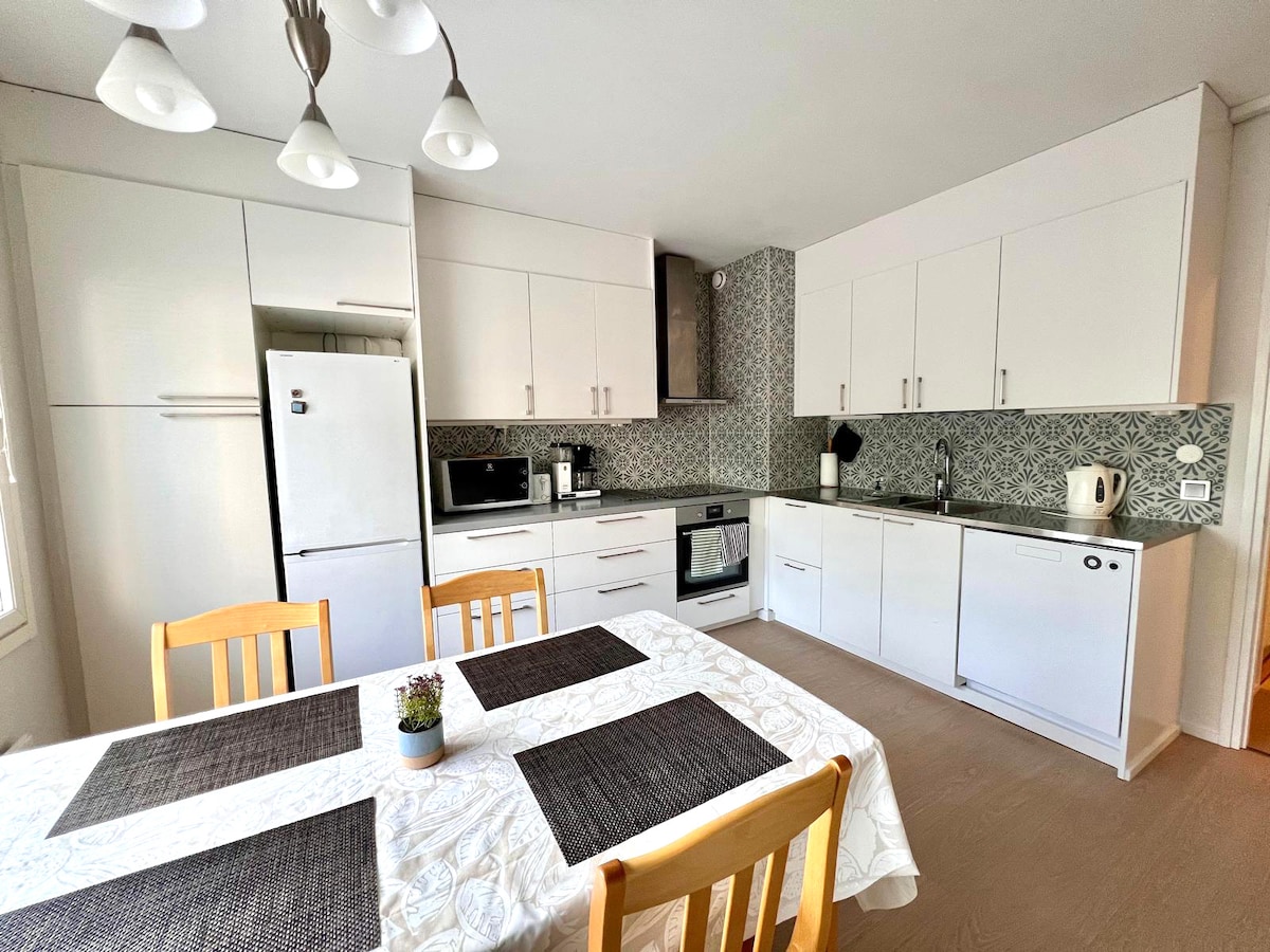 Bienvenido a la isla de la gente feliz. En este alojamiento se respira tranquilidad: ¡relájate con toda la familia o con amigos! Los viajeros solos también son bienvenidos, les espera una sala de trabajo separada. Ubicación perfecta, junto a la estación de metro. Desde la estación de metro de Lauttasaari se tarda cinco minutos hasta la estación de tren de Helsinki. Puedes utilizar el aparcamiento en la calle con disco de aparcamiento si vienes en tu propio coche. Tiendas de comestibles, cafeterías y restaurantes disponibles en el barrio. La playa de Kasinonranta está cerca.