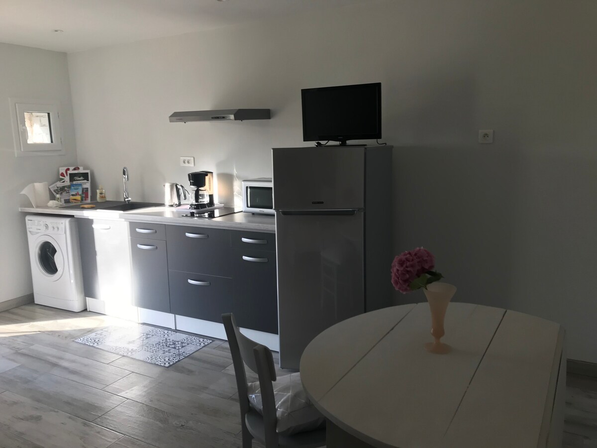 encantador estudio de 25 m2 totalmente equipado y nuevo,independiente,con patio amplio y seguro. Cocina bien equipada Baño y aseo privado Se proporciona ropa de cama y toallas Fácil acceso a 2 km de la salida de la autopista A28 Predio para vehículo. ropa de cama nueva y acogedora Aire acondicionado.television,wifi Desayuno con reserva 10 euros/persona Sin gastos de limpieza