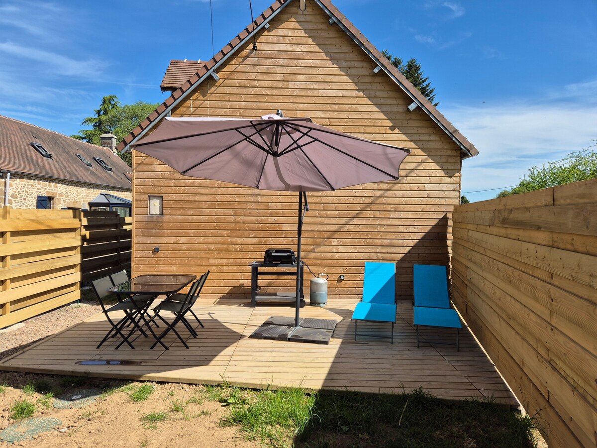 Notre ancien fournil est une partie de notre corps de ferme. Au rez - de - chaussée, il est pourvu d'une cuisine équipée et d'une salle de douche avec toilettes. A l'étage, une chambre mansardée dispose de 3 lits indépendants. A l'extérieur, nos hôtes ont accès à une terrasse privée avec du mobilier de jardin. La wifi est gratuite. Un petit déjeuner (pain paysan, confiture) est proposé sur demande pour 5 euros par personne. Proche de la voie verte, les promeneurs apprécieront cette halte.