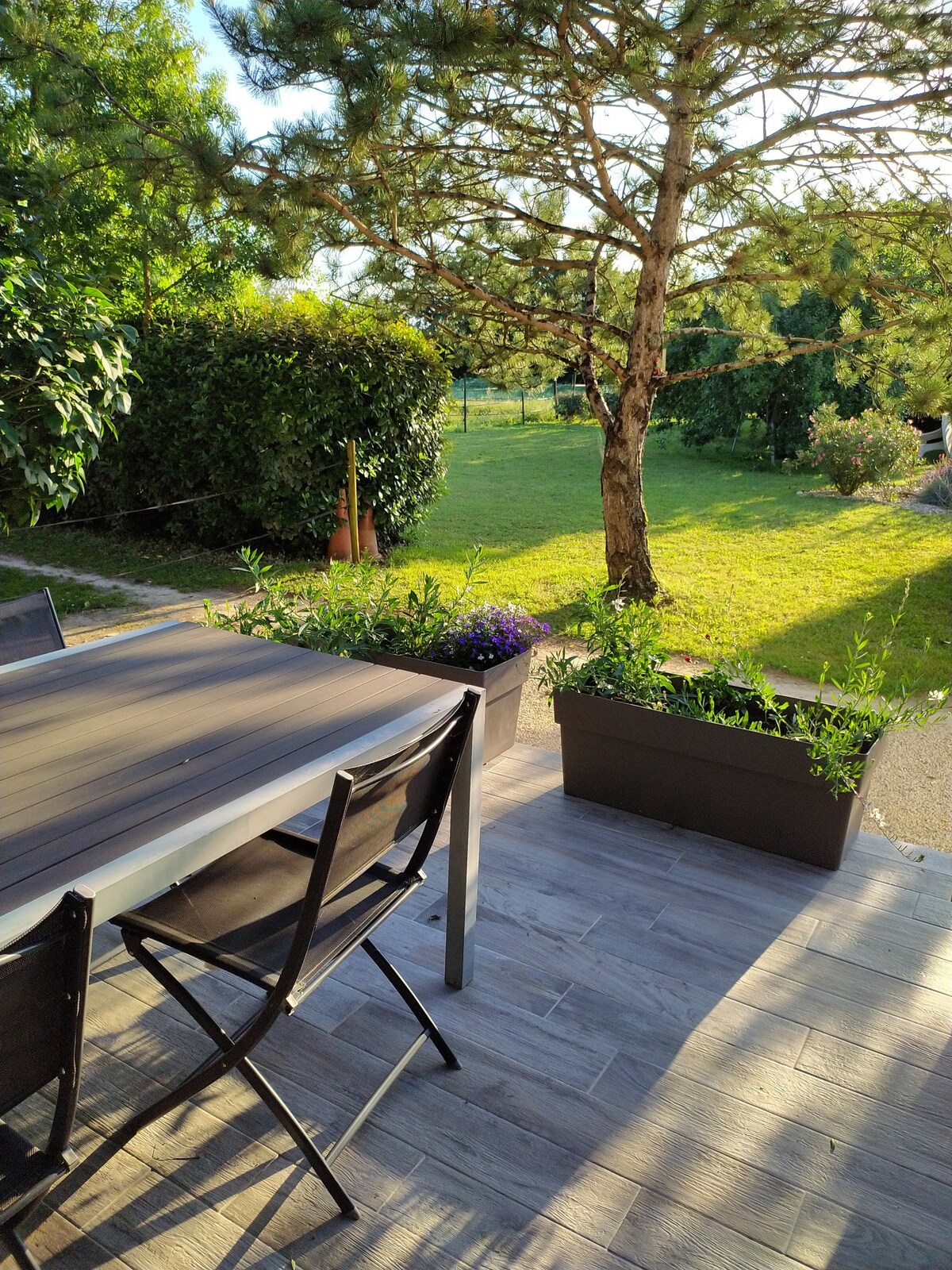 Situado en una zona verde, ofrecemos un alojamiento independiente dentro de nuestra propiedad de 1500 m² con árboles frutales, olivos, palmeras... En la planta baja, cocina abierta al salón En la planta superior, suite principal con aire acondicionado, cuarto de baño con ducha italiana, inodoro suspendido Cama doble de 180*200, ropa de cama de calidad, sábanas, toallas, detergente para platos, esponja y paños de cocina Jardín cerrado, piscina de 11*5 climatizada de mayo a septiembre dependiendo de las condiciones climáticas
