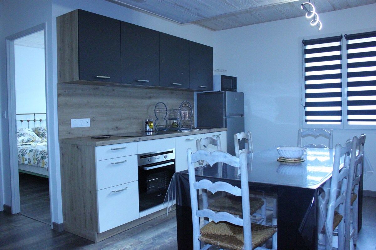 Alta villa de 63 m2 + terraza a 500 M del centro del pueblo, muy luminoso con grandes aberturas y vistas impresionantes al campo. Consta de una gran sala de estar con una cocina totalmente equipada y una zona de estar con TV y sofá cama, un dormitorio, un lavadero y un baño (ducha) y un aseo separado. ROPA DE CAMA INCLUIDA JULIO Y AGOSTO, SOLO DE SÁBADO A SÁBADO La calefacción está controlada por mí mismo se ajustará entre 20 y 21 grados. Cafetera SENSEO