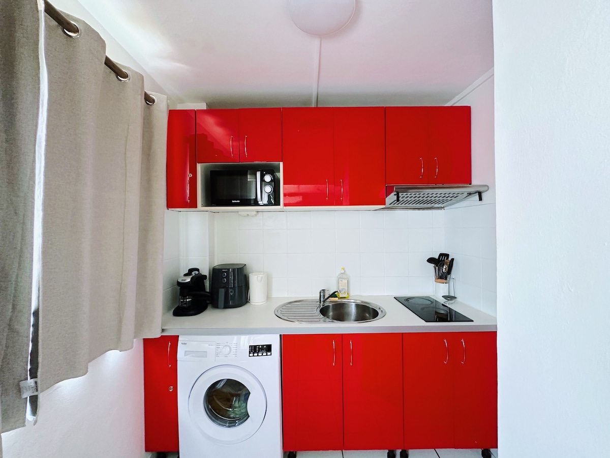 Situado en el centro de Fort-de-France, disfrutará a pie de los lugares culturales, la playa a 8 minutos, la terminal de cruceros Visite los Trois-Îlets en el servicio de transporte marítimo a 15 minutos de travesía Una habitación de 25 m2 - Clim - Wifi - Tv - Cama 160*200 + sofá cama - Toallas - Hervidor de agua/cafetera - Microondas/Tostadora - Placas de cocción - Frigorífico - Air fryer - Baño privado Posibilidad de alquilar un segundo alojamiento en la misma residencia hacer la solicitud