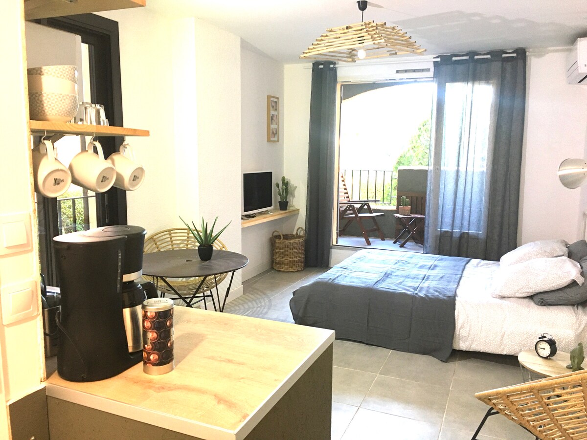 A dos pasos del mar y de todos los sitios de interés... Estudio cómodamente amueblado, tranquilo, ideal para 2-3 personas: - Aparcamiento privado seguro gratuito - Sofá cama de 160*210 + cama individual - Cocina equipada - Zonas de comedor interior y exterior - Terraza con vistas - Cuarto de baño equipado - Aseo separado - Cuna y trona disponibles a petición Se proporciona ropa de cama en el lugar. Traiga toallas de baño.