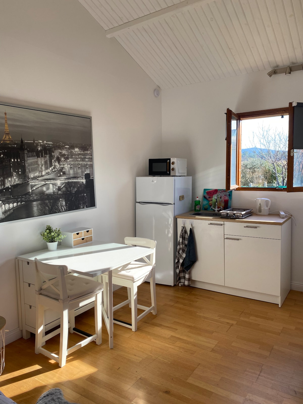 Minimalista, con una comodidad sencilla, propicia para la calma, la relajación y para desconectar, nuestro pequeño chalet de 40 m2, de los cuales 20 en altillo (atención techo inclinado, escalera de molinero) está instalado en el mismo terreno que nuestra casa, a 3 km del pueblo de Biot, a medio camino entre Niza y Cannes. No fumadores en el interior Ni WiFi ni televisión WC exterior (reemplazó los inodoros secos) Clima reversible Relajación y modelado de sonido a petición.