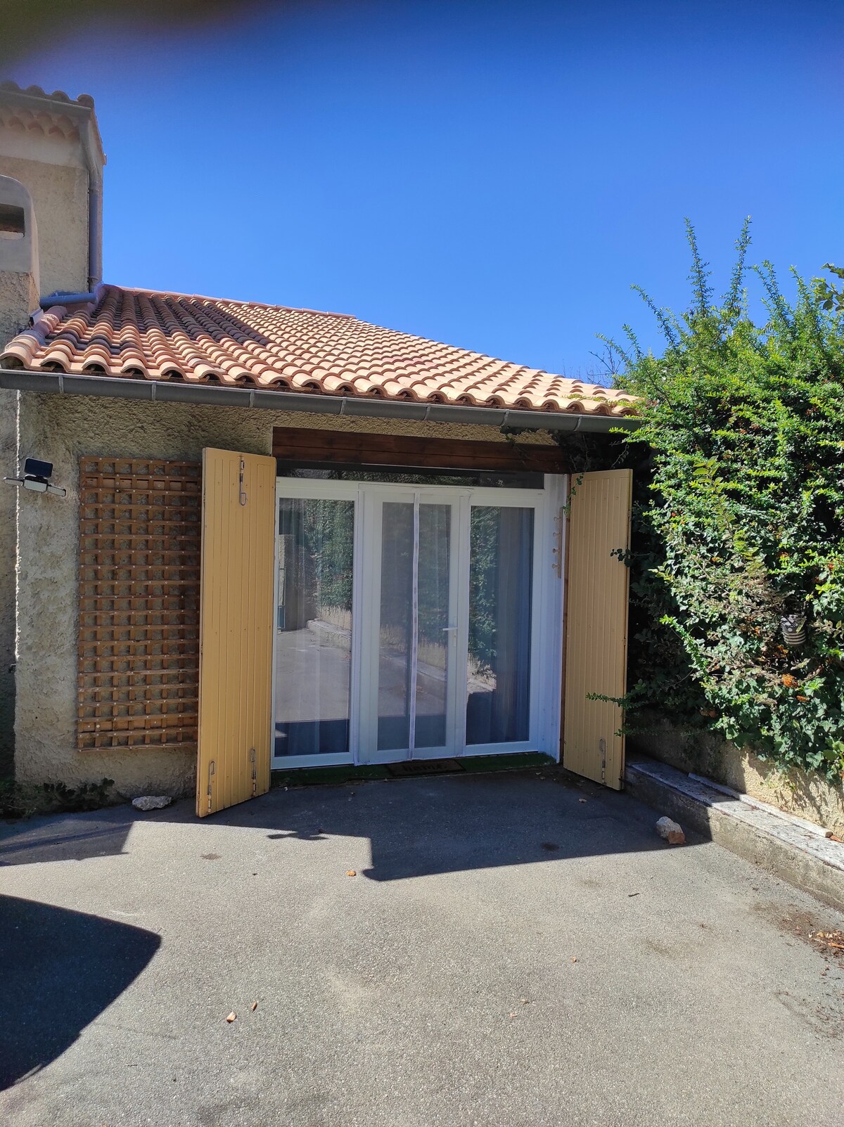 Villa de 56 m2 moderna, climatizada, wifi. "No FUMAR" - Hasta 3 huéspedes. - Profesionales, solos, parejas, familias. Entrada privada. - Habitación de 20 m2 en altillo. - Terraza, totalmente cerrada, puede acomodar una motocicleta. La terraza sur, en la entrada está reservada para usted, más privacidad. - Amueblada mesa bistró y 2 sillas. - Piscina compartida con el anfitrión, en temporada . Aparcamiento a 20 metros gratuito y obligatorio...