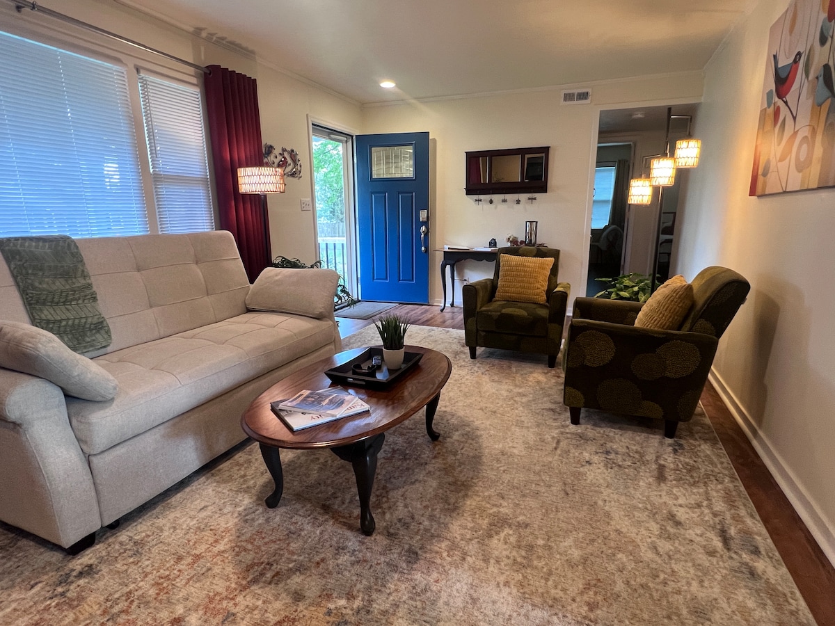 Ubicada en el corazón de Prairie Village, esta encantadora casa fue remodelada recientemente y está equipada con todo lo necesario para una estancia perfecta. Disfruta de colchones de lujo en los dos dormitorios, ambos equipados con televisores. Acurrúcate junto a la chimenea con tu libro favorito o ve una película en la televisión de la sala de estar. Juega una partida de futbolín o tejo con el juego mientras tu plato favorito se está cocinando en la parrilla Traeger exterior. Camina hasta las tiendas de Prairie Village en cuestión de minutos.