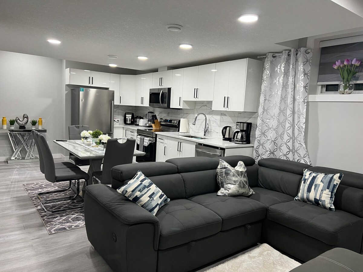 ¡Una joya de Edmonton! Alójate en esta suite independiente, el lugar perfecto desde el que explorar la belleza de Edmonton o simplemente sentarte y relajarte. La unidad cuenta con 4 electrodomésticos de cocina grandes y una lavadora/secadora. Registro autónomo en tu propia entrada privada a una unidad con espacio más que suficiente para 4 adultos. A 20 minutos en coche del centro de la ciudad o del aeropuerto y a 5 minutos en coche de Currents of Windemere para todas tus necesidades de compras. Se incluye wifi de alta velocidad, televisión por cable, Netflix, Disney+ y Prime Video.