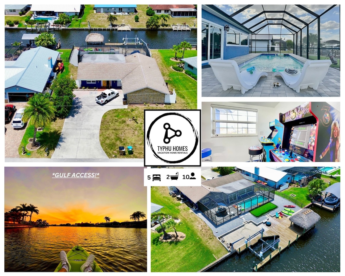 Hermosa y moderna casa de NUEVA construcción con piscina climatizada, en canal de agua salada. Sin daños después del huracán Milton. DIVERSIÓN para familias y tranquilidad para adultos; totalmente equipado con mesa de juegos electrónicos, juguetes y flotadores de piscina, juegos al aire libre, juegos de arcade, juegos de mesa... ¡mucho para disfrutar! ¡Disfruta de la vida interior/exterior en el amplio lanai estilo resort y refúgiate en los elegantes acabados y lujosas comodidades en todas partes!