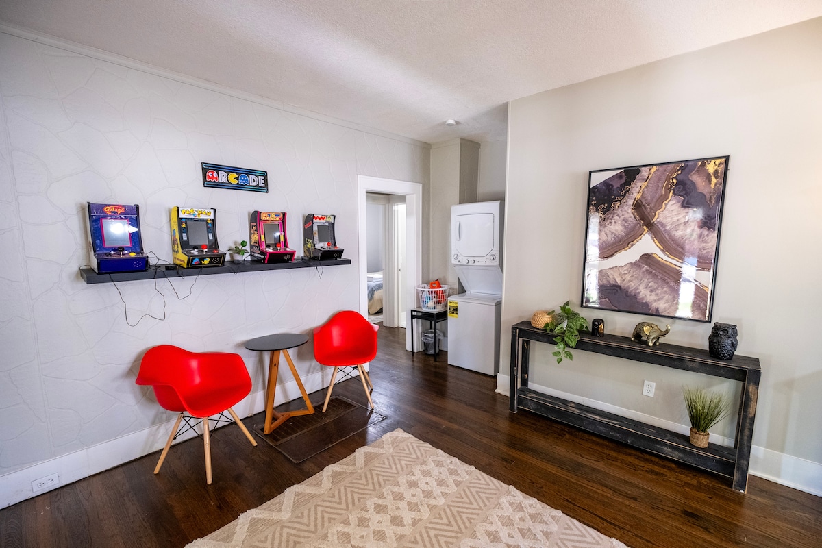The Harris House is a real gem nestled in the heart of Historic DT Lee’s Summit! Just steps away, enjoy shopping, restaurants/bars, coffee shops, Farmer’s Market, & much more! Across the street is Harris Park & Summit Waves water park! Catch a train ride on the Amtrak, or just enjoy the nostalgic sound of the trains as they travel thru this quaint little town! Perfect space for out of town work! Easy hi-way access to Chiefs & Royals stadiums, DT KC, The Plaza, about 20 min from everything KC!