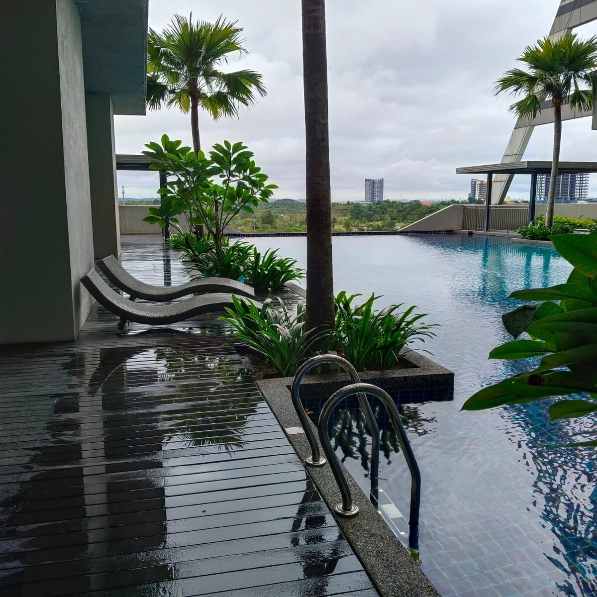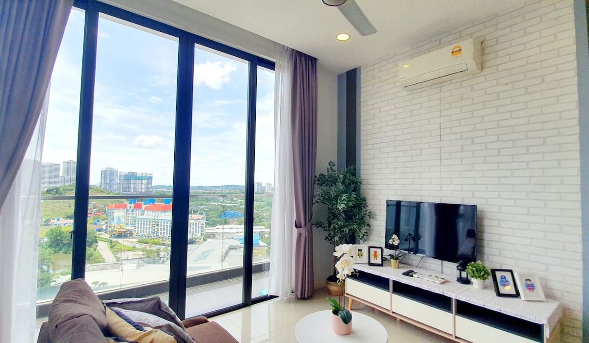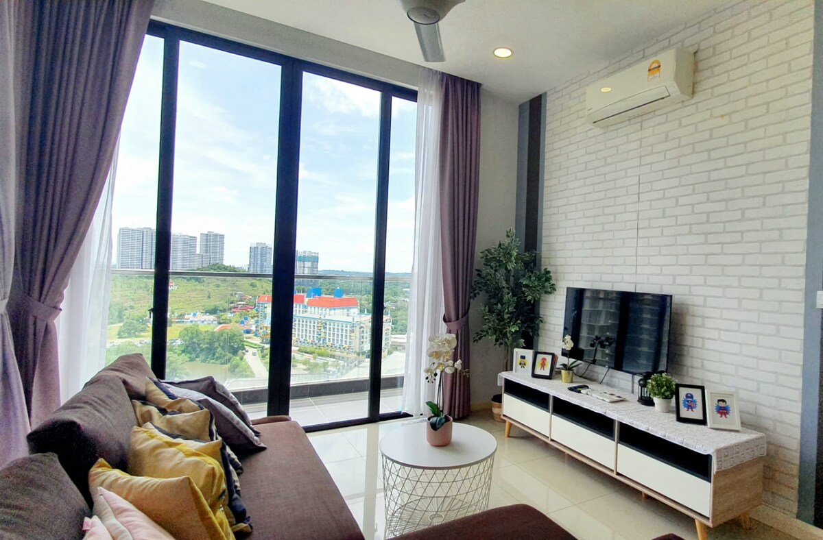 Afiniti Residensi- Sky A is located opposite of Legoland [3mins walk] child friendly and perfect getaway. ✔️Children slide, toys and games ✔️Highest floor 21st unblocked view of Legoland ✔️Spacious area 1064 sqft ✔️Newly renovated with new furnishings, beddings and appliances, hot filtered water dispenser Shops and Restaurants nearby: ✅️ Mall of Medini- Supermarket/ 24hr Restaurant ✅️ 5mins drive to Eco Botanic ✅️ 10mins drive to Sunway Big Box and Ladang Xpark ✅️ 20mins drive to Bukit Indah