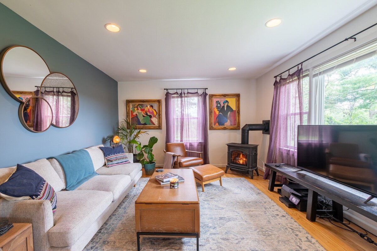 Escápate a nuestra casa de mediados de siglo cerca de Bethlehem Christmas City, Poconos, senderismo, ciclismo y esquí. Casa de 3 dormitorios bellamente decorada, es el lugar ideal para apreciadas reuniones familiares y celebraciones festivas. 2 habitaciones familiares se suman a unas relajantes vacaciones familiares. Además, ping pong en el sótano. Patio trasero privado cerrado con chimenea exterior. Patio cubierto con tejo al aire libre. Se consideran pequeños eventos con la aprobación de los propietarios (despedidas de soltera, cumpleaños, etc.) con costes adicionales.