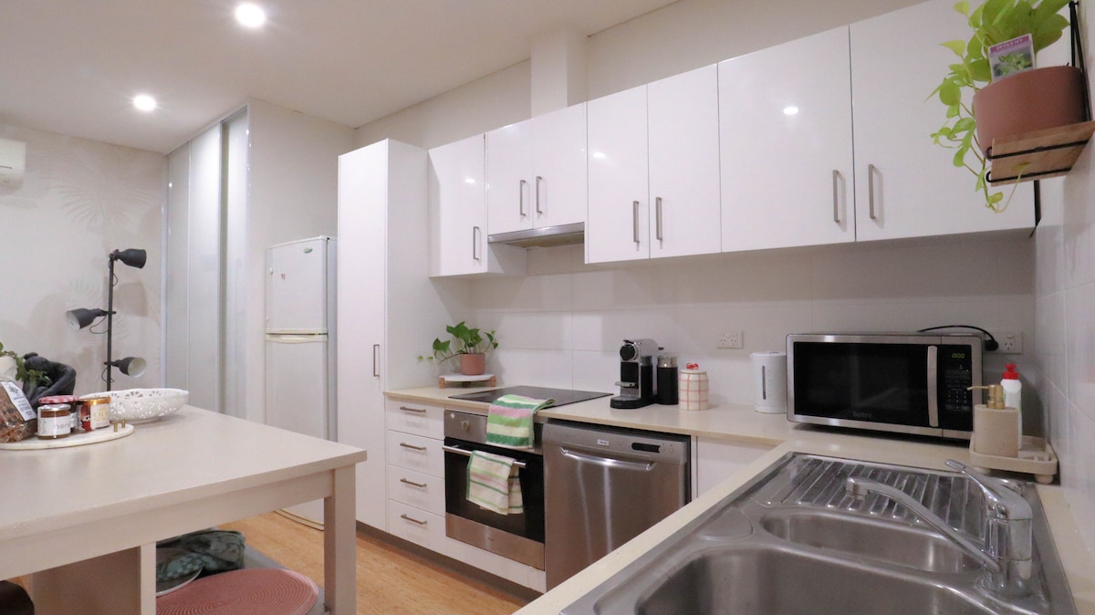 Take it easy at this unique and tranquil getaway. Guests have their own entrance to the downstairs Studio and your hosts live on the premises above ( You may hear the occasional footsteps !) Close to the bus and train or a 12 minute walk to the beach. Shared access to a beautiful garden where you can enjoy your morning coffee. An abundance of shops cafes and restaurants are within walking distance. Both the Regis Aged Care facility and the Guildhall Wedding venue are a few short minutes away.